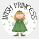 Esta design apresenta uma menina irlandesa fofa com cabelo vermelho vestindo um vestido verde e uma tiara verde e a legenda "Irish Princess" sobre um fundo de pequenas vergonhas.