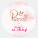 Bonito adesivos de aniversário da Princesa Rosa. Este é o design que apresenta várias tonalidades de cor-de-rosa com textura aquosa e texto de princesa fofo em ouro com uma coroa. Personalize o texto com as informações da sua parte ou personalize a design para alterar ainda mais a cor do texto.