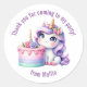 Adesivo Redondo Princesa Roxa Unicorn Obrigado