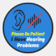 Dedico esta design a pessoas que são duros de audição, surdos ou deficientes auditivos. Apresenta um diagrama auricular simples sem sinais sonoros e o texto "por favor, seja paciente, eu tenho problemas auditivos" num fundo azul. Esta design pode ser dada como um presente aos entes queridos como uma forma de cuidado e amor pelos outros.