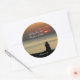 Um belo adesivo de escritura de citação inspiradora mostra uma pessoa sentada na praia com um belo nascer do sol do oceano. Apresenta a Bíblia Verse Matthew 6:33, "Procure primeiro o reino de Deus."~