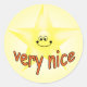 Uma estrela de rosto feliz com o texto "muito legal" em um adesivo de prêmio de ensino.