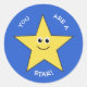 Um autocolante para mostrar elogio e encorajamento. Esta estrela amarela brilhante tem olhos brilhantes e um grande sorriso, e é representada sobre um fundo azul. O texto a branco que acompanha a publicação é "VOCÊ É UMA ESTRELA!", ou pode ser editado para sua própria legenda.
