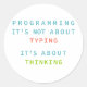 Display the core truth of software development with this "Programming It's Not About Typing It's About Thinking" Classic Round Sticker. This design, exclusive to Code Designs, is the perfect statement piece for all your tech accessories.