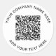 Adesivo simples de promocional para a sua empresa ou organização. Insira o endereço de URL do seu site para criar um código de QR digitalizável e adicionar duas linhas de texto personalizado, como o nome da sua empresa, o slogan, o obrigado ou a saída do vazio.