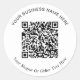 Adesivo redondo de promocional moderno para a sua empresa ou organização. Insira o endereço de URL do seu site para criar um código de QR digitalizável vinculado ao seu site e adicione duas linhas de texto, como o nome e o slogan da sua empresa.