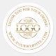A Elegante White Dourada Empresa De Logotipo Personalizado Para Empresas Branded Obrigado Clássico Round Sticker. Este adesivo minimalista moderno apresenta um design branco e dourado, ideal para marketing corporativos e marcas de pequenas empresas. Personalize-o com seu logotipo usando nosso modelo fácil de editar. Perfeito para adicionar um chic, um talento profissional a qualquer pacote ou correspondência de cliente. Ideal para butiques, compras online, cafés, salões e muito mais. Editável e moderno, é a melhor ferramenta de marca para uma aparência polida e profissional.