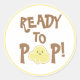 Esta etiqueta adesiva apresenta um tema fofo de pipoca de chá de fraldas. A frase "Pronto para Pop" é impressa na frente em uma fonte marrom timítica tostada. A letra "O" é substituída por um kernel de pipoca feliz que tem um rosto feliz e fofo.