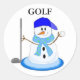 Um bonitinho de neve pronto para jogar golfe, pegou suas bolas de neve e seu clube.
