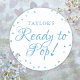 Apresentando texto azul, bonito corações de amor azuis estão espalhados em torno de seus detalhes personalizados sobre este chic pronto para o chá do bebê pop, borrão ou adesivo do chá do casal. Ideal para selar envelopes e favoritos para festas de convite. Projetado por Thisnotme©