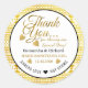 Elegantes adesivos de agradecimento para lembrancinhas de casamento de higienizador de mãos personalizado . Adesivos de agradecimento de casamento com padrão tribal asteca boho com tipografia de agradecimento dourada e corações dourados. Personalize com os nomes dos noivos e data do casamento.