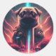 Adesivo Redondo Pug Adorável no Figurino Robô Futurístico