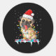 Adesivo Redondo Pug Christmas Tree Lights Santa Dog Xmas