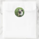 Adorable pug puppy sitting on grass, looking to the side on off center photograph which leaves room to custom with your own text.