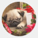 Adesivo Redondo Pug Puppy e caixa do presente