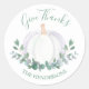 Estes adesivos de Ação de Graças são decorados com uma abóbora branca de cor aquosa e eucalipto em tons suaves de verde. Facilmente personalizável. Original Watercolor © Michele Davies.