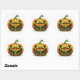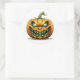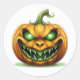 O adesivo redondo é mostrado com uma impressão de abóbora assustadora no Halloween. Personalize este item ou comprar como está.