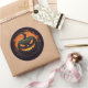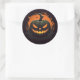 O adesivo redondo é mostrado com uma impressão de abóbora assustadora no Halloween. Personalize este item ou comprar como está.