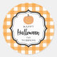 Adesivo Redondo Pumpkin de Xadrez Laranja no Dia das Bruxas