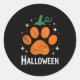 Adesivo Redondo Pumpkin Dog Cat Paw Print Halloween Pet Lover