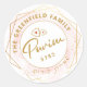 Adesivo Redondo Purim Feliz, Script Personalizado, Rosa e Dourado
