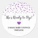 Ela está pronta para o Pop chá de fraldas a favor do adesivo de etiqueta com confete roxo e coração com texto preto. Perfeito para um chá de fraldas decorar favores de pipoca.