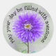 Dália roxa-branca num fundo texturado de aquarela com texto inspiracional. O texto pode ser editado ou excluído.