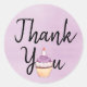 Adesivo Redondo Purple Watercolor Obrigado Cupcake