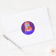 Um adesivo clássico redondo púrpura com uma mulher clássica, cabelo e óculos vermelhos, e nome personalizável. Para cartas de música, presentes, para escola e escritório.