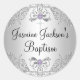 Adesivo Redondo Púrpura e Silver Sparkle Jewel Baptism Sticker