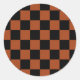 Adesivo Redondo Quadrados Xadrez Preto e Laranja Plaid Búfalo