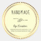 Os autocolantes russos para o seu negócio artesanal, artístico ou artesanato apresentam um quadro de ouro com o seu nome e/ou nome comercial em blocos de estilo manuscrito preto e em letra de script, acentuados com uma ilustração de flor. Personalize com duas linhas de informações de contato e seu nome de usuário