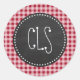 Adesivo Redondo Quadro De Retros; Gingham Vermelho De Carmim; Veri