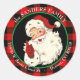 O recurso neste adesivo de feriado divertido é uma imagem clássica do Papai Noel. Vestido com seu tradicional chapéu vermelho e branco, ele está levantando um dedo e piscando. A imagem é colocada em um fundo preto, com uma moldura de círculo verde brilhante de Natal. O texto em branco tem seu nome e endereço em uma borda de círculo xadrez vermelho e preto de búfalo. Crianças de todas as idades vão amar!