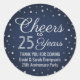 Adicione um toque personalizado de conclusão ao aniversário de casamento. Obrigado, notas ou favoritos para festas com esses marinhos azuis e cinzas, adesivos redondos de prata / selos de envelopes. Todo texto é simples de personalizar ou excluir. Esta modelo é criada para um 25, mas pode ser facilmente alterada para outro ano ou evento, como um aniversário. A design apresenta pontos de configuração de folha falsa prateada em um fundo preto, a caligrafia de na moda "Saúde a 25 anos" e a mensagem personalizável da tipografia minimalista moderna no fundo. Por favor note que as cinzas são impressas para simular prata e não são folhas metálicas.