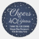 Adicione um toque personalizado de acabamento à festa de aniversário, obrigado a anotações ou favores com marinho azul, branco e falso adesivo prateado com adesivos redondos / selos de envelopes. Todo texto é simples de personalizar ou excluir. Esta modelo é criada para um aniversário de 40 anos, mas pode facilmente ser alterada para outro ano ou evento, como um aniversário. A design apresenta pontos de configuração de folha falsa prateada em um fundo azul marinho, a caligrafia de na moda "Saúde a 40 anos" e a mensagem personalizável da tipografia minimalista moderna no fundo. Observe que prata é impressa com cor branca e cinza, não com folha metálica.