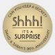 Adicione um toque elegante personalizado para surpreender convites de festas, decorações e favores de 50 anos de ouro, com esses adesivos de folha metálica preto e dourados modernos / selos de envelopes. Design apresenta uma deco de arte tradicional inspirada na tipografia com mensagem personalizável que diz "Shhh! É uma SURPRESA." Como opção, a tipografia curvada por na moda pode ser um nome e endereço para uso como etiquetas de endereço de volta redonda quic moderna.