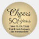Adicione um toque final personalizado a cartões de agradecimento ou lembrancinhas de aniversário de casamento com esses adesivos redondos ou selos de envelope pretos e dourados. Todo o texto é simples de personalizar ou excluir. Este modelo é configurado para um aniversário de 50 anos, mas pode ser facilmente alterado para outro ano ou evento, como um aniversário. O design apresenta um fundo dourado em foil falso, a caligrafia estilosa "Brindamos a 50 anos" e uma mensagem personalizável com tipografia minimalista moderna na parte inferior.