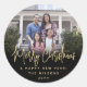 Adicione um toque de acabamento de na moda aos presentes de Natal, cartões de natal e favoritos para festas com adesivos personalizados modernos para fotos redondas / selos de envelopes. A imagem e todos os textos nesta modelo são simples de personalizar com qualquer texto, como Feliz Natal, Felizes Feriados, Saudações de Sábios, ou Feliz ano novo. Como opção, altere a tipografia do script para seu nome e use o restante para seu endereço de retorno ou mensagem especial. O design preto e dourado apresenta caligrafia moderna escrita manuscrita, tipografia sans-serif minimalista clássica e uma foto da sua escolha. Observe que o ouro é impresso a cor, não a folha metálica. Esses adesivos exclusivos também podem ser etiquetas elegantes para presentes, etiquetas de favorecimento ou selos de envelope para cartões de natal ou convites de festas. Feliz Natal e Feliz ano novo!