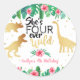 Adesivo Redondo Quatro Raparigas Dinossauras Selvagens 4º Aniversá
