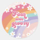 Adesivo Redondo Quatro Vezes Groovy Retro Rainbow 4.º Aniversário