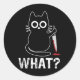 Adesivo Redondo Que - Engraçado Gato Com Design Gráfico De Faca