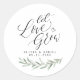 A caligrafia moderna "Deixe o amor crescer" e a paisagem rústica com cor d'água verde deixa design, chic e elegante. personalize com nomes e datas de casais, adesivos de excelente para casamentos, chás de panela, chás de fraldas ou qualquer evento especial.