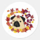 Adesivo Redondo Quebra de Pug com Folhas, Pumpkins e Girassóis