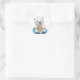 Esta ilustração encantadora apresenta um adorável ursinho polar de desenho animado sentado em uma flutuação de gelo, berrando uma caneca laranja a vapor — provavelmente contendo uma bebida quente. A expressão de conteúdo do urso polar contrasta com o ambiente gelado de icebergs torrenciais sob um céu azul claro. A trabalho de arte caprichosa evoca um conforto aconchegante no meio do frio ambiente ártico.