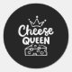 Adesivo Redondo Queijo Rainha Co. Letra moderna amarela feminina P
