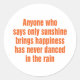 Dias chuvosos podem deprimir algumas pessoas. Para outros, traz novas oportunidades para dançar! Lê: "Quem diz que apenas o sol traz felicidade nunca dançou na chuva."