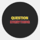 Adesivo Redondo Question Everything Bold Tygraphy Graphic