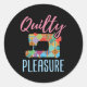 Um design celebrando a arte de colchar, apresentando uma máquina de costura enfeitada com elementos de colcha para colchões apaixonados.