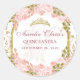 Adesivo Redondo Quinceanera, Arca Dourada Princesa Floral Rosa Esb